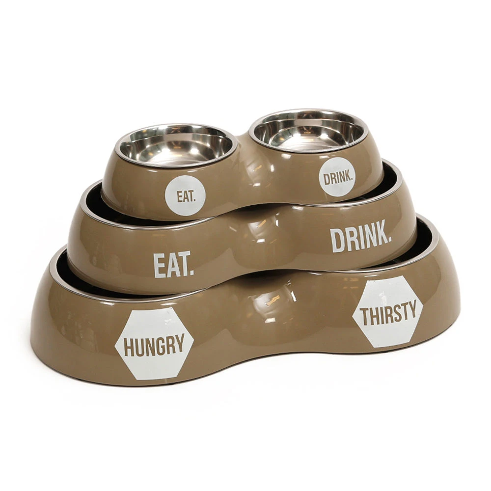 De Dubbele Voerbak van 51 Degrees North is een mooie kom die het eet- en drinkplezier van uw kat of hond vergroot. De stevige voerbak is handig in gebruik en kan prima tegen een stootje. De voerbak is verkrijgbaar drie verschillende formaten en drie verschillende kleuren. Ieder bedrukt met twee toepasselijke quotes. Verder is de binnenkant van de bak gemaakt van RVS materiaal en de buitenkant van plastic.
