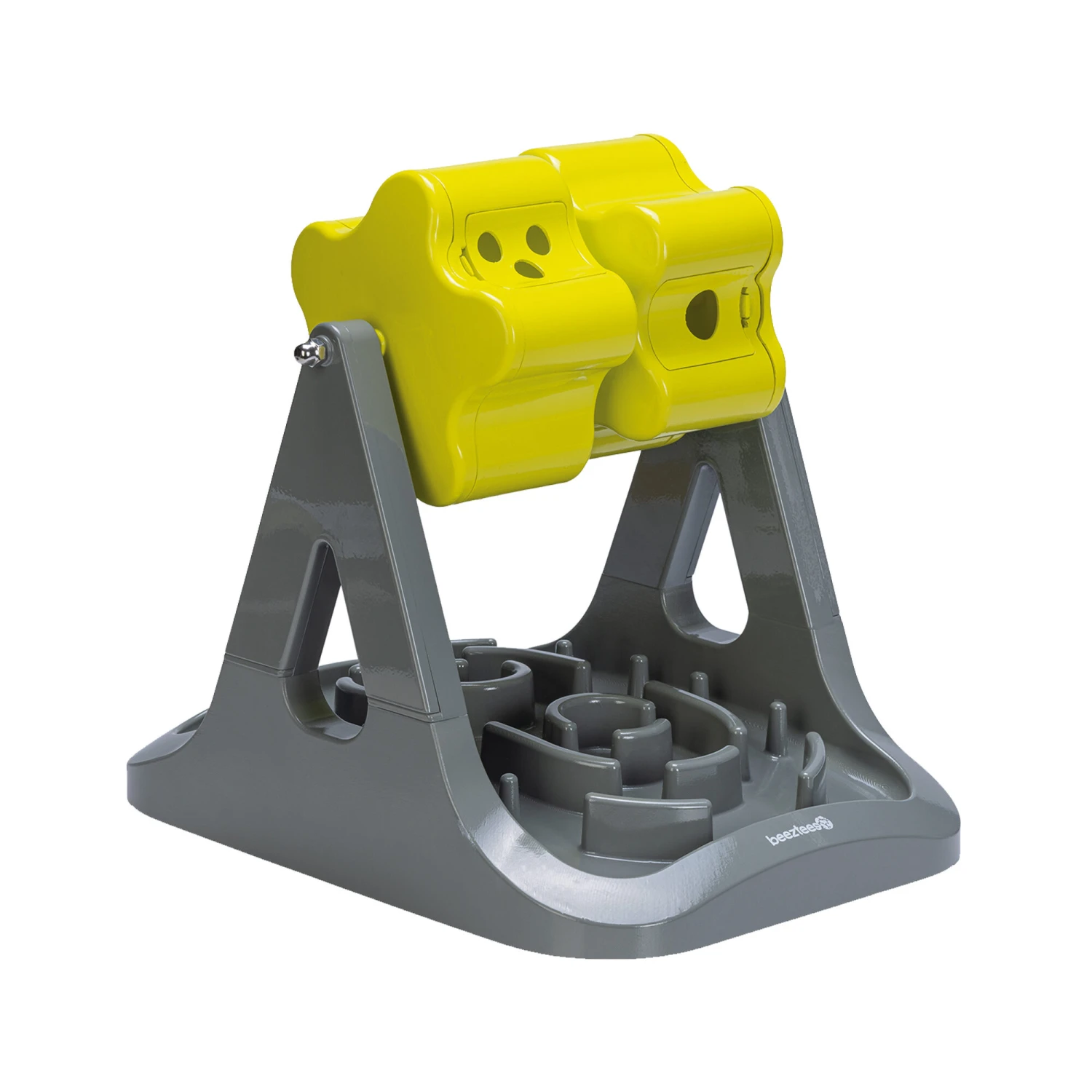 Maak uw hond blij met dit leuke denkspel, de Beeztees Brain Game Rodar. Het spel is gemaakt van plastic en heeft twee rollers waar u hondensnoepjes in kunt stoppen. Als uw hond deze draait, met zijn poot of neus, kunnen de snoepjes uit de rollers vallen. De Beeztees Brain Game Rodar komt met 3 verschillende klepjes. Zo kunt u de moeilijkheidsgraad bepalen tussen een, twee of drie gaatjes. Als het snoepje eruit valt beland deze in de anti-schrok bodem. Ook hier heeft uw hond de uitdaging om het snoepje te pakken tussen de verhogingen. Het spel helpt met de mentale stimulatie en tegen verveling.