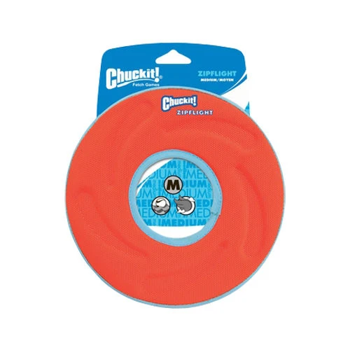 Speelt u graag met uw viervoeter samen? Dan is de Zipflight van Chuckit! een leuk apporteerspeeltje om samen mee te spelen. Deze frisbee is licht in gewicht en gaat tijdens het gooien omhoog, waardoor de vangkans van uw viervoeter wordt vergroot. U kunt zowel op het land als in het water met de Zipflight spelen. Zelfs op hoog water, blijft dit speeltje drijven!