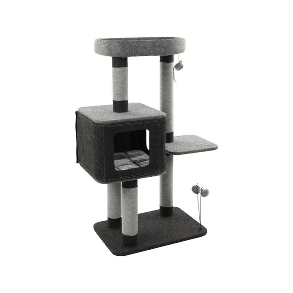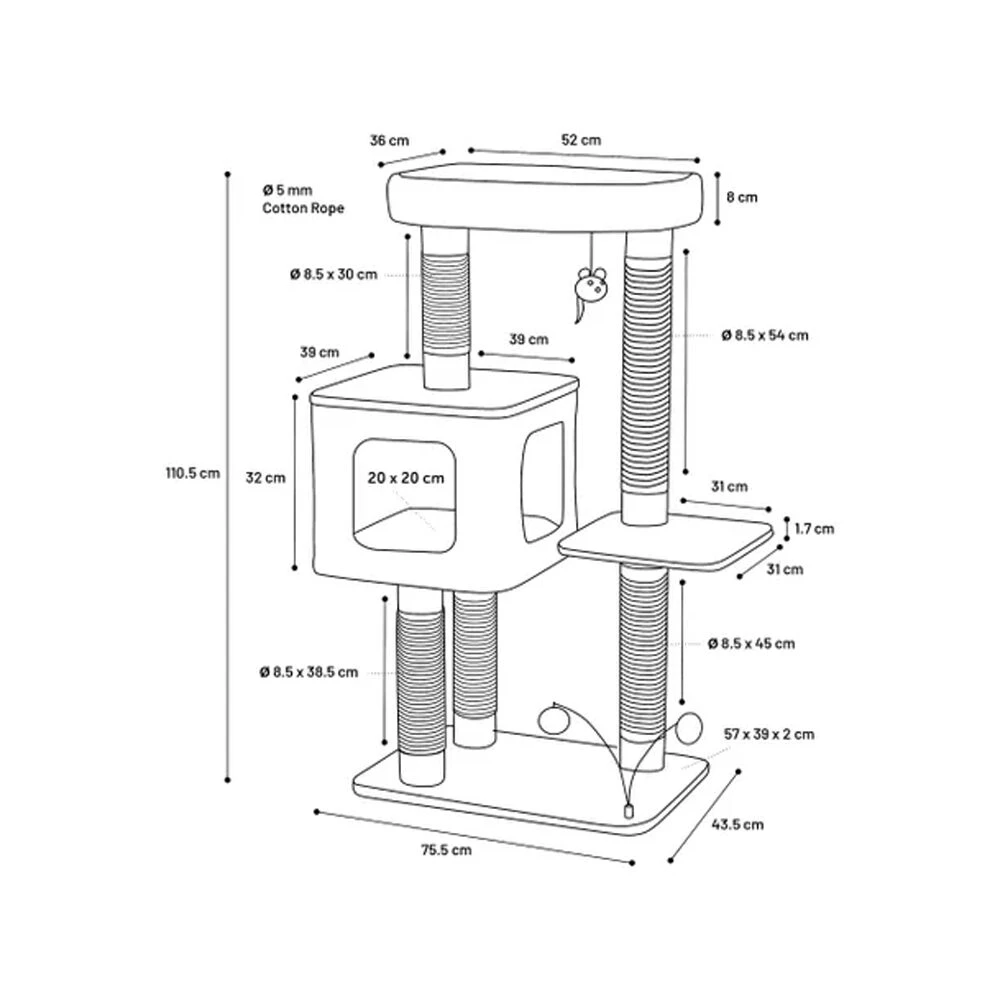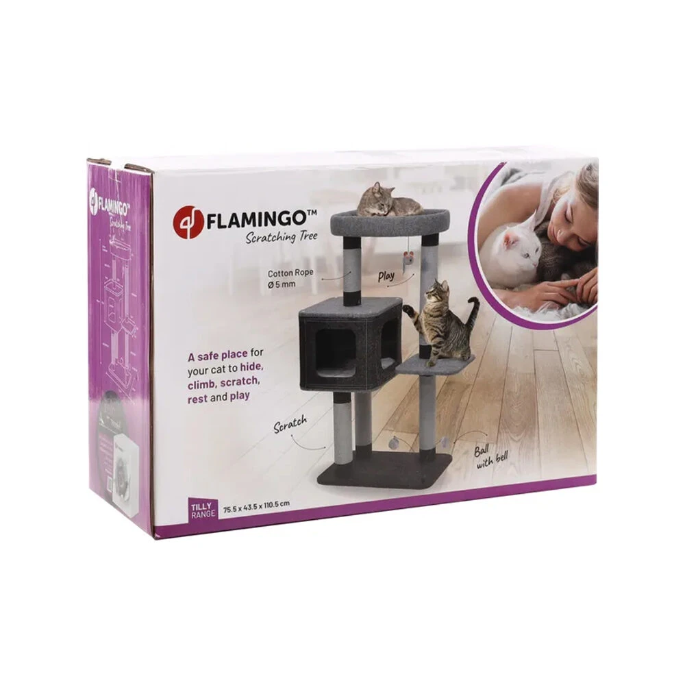 Ontdek de elegantie en het ultieme comfort van de Fati krabpaal van Flamingo voor uw geliefde kat. Met zijn trendy design, schuilhuisje, ligmand en katoenen krabtouw biedt deze krabpaal de ideale plek om te spelen, te rusten en nageltjes te verzorgen. Bovendien zorgt het uitneembare kussen ervoor dat het schoonmaken een fluitje van een cent is!