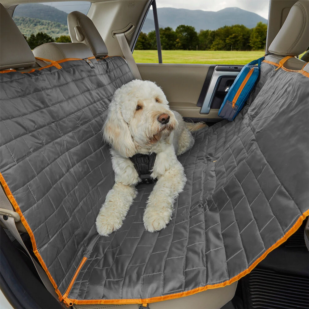 Houd uw auto schoon met de ‘hangmat’ voor op de achterbank. Deze autodeken van Kurgo kan wel tegen een stootje en creëert ook meteen een fijne plek voor uw huisdier. De Loft Hammock is gemaakt van Microtomic â„¢ ripstop-materiaal met polytech-vulling en biedt daardoor een goede bescherming van de auto. De hangmat is volledig omkeerbaar en met zijn zes bevestigingspunten heeft deze hoes een aangepaste pasvorm en stijl. Uw viervoeter valt niet tussen de voorstoelen en achterbank want het denken beschermt deze gehele omgeving. De hangmat is waterbestendig en wasbaar in de machine. Het is nog steeds mogelijk om gebruik te maken van veiligheidsgordels door de openingen met ritssluitingen. Kortom: een multifunctionele autodeken!