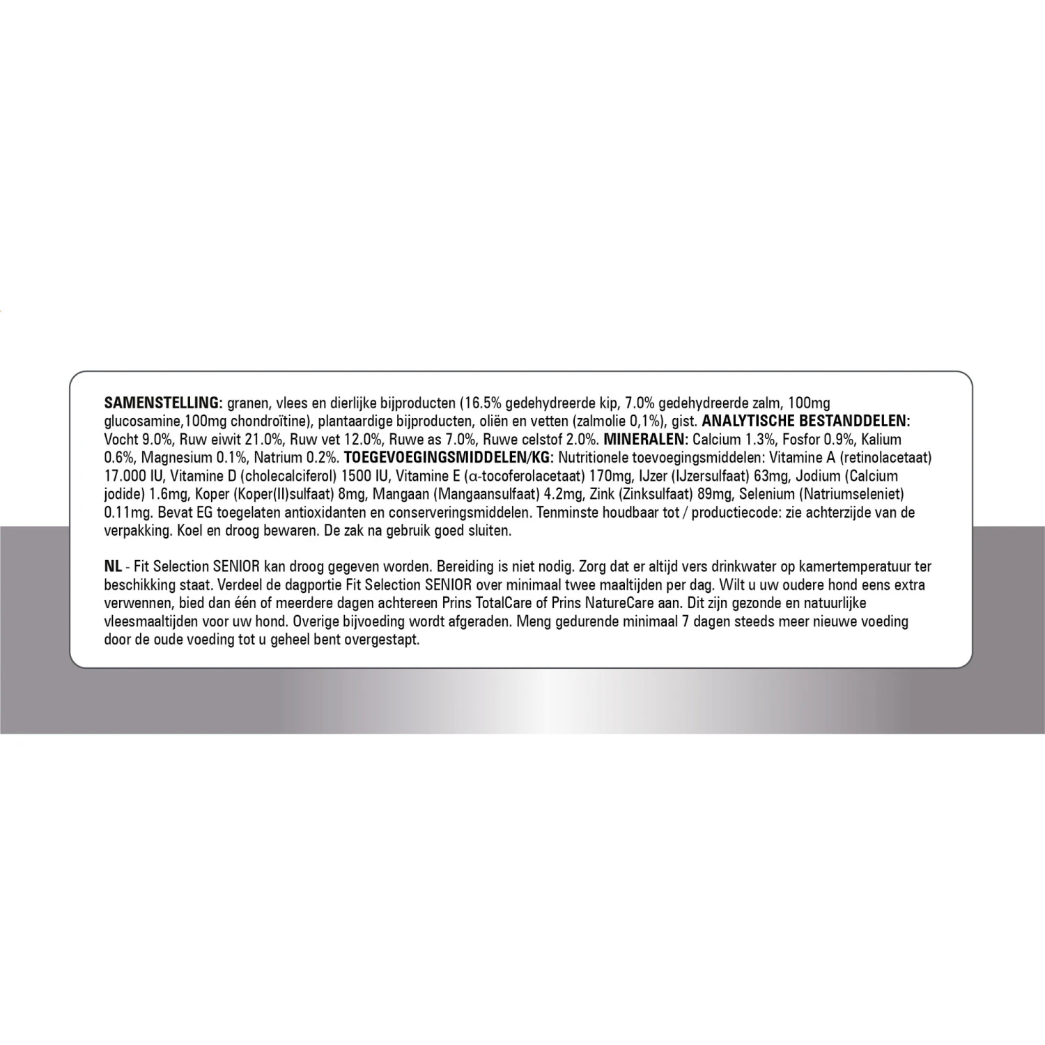 Speciaal voor uw oudere hond van een middelgroot tot groot ras is er Fit Selection Senior van Prins. Deze smakelijke, knapperige voeding op basis van kip, zalm en rijst stimuleert uw hond om te kauwen. Daarnaast draagt het bij aan een goede vertering en evenwichtige darmflora. De complete voeding biedt tevens ondersteuning aan de gewrichten van uw oudere viervoeter.
