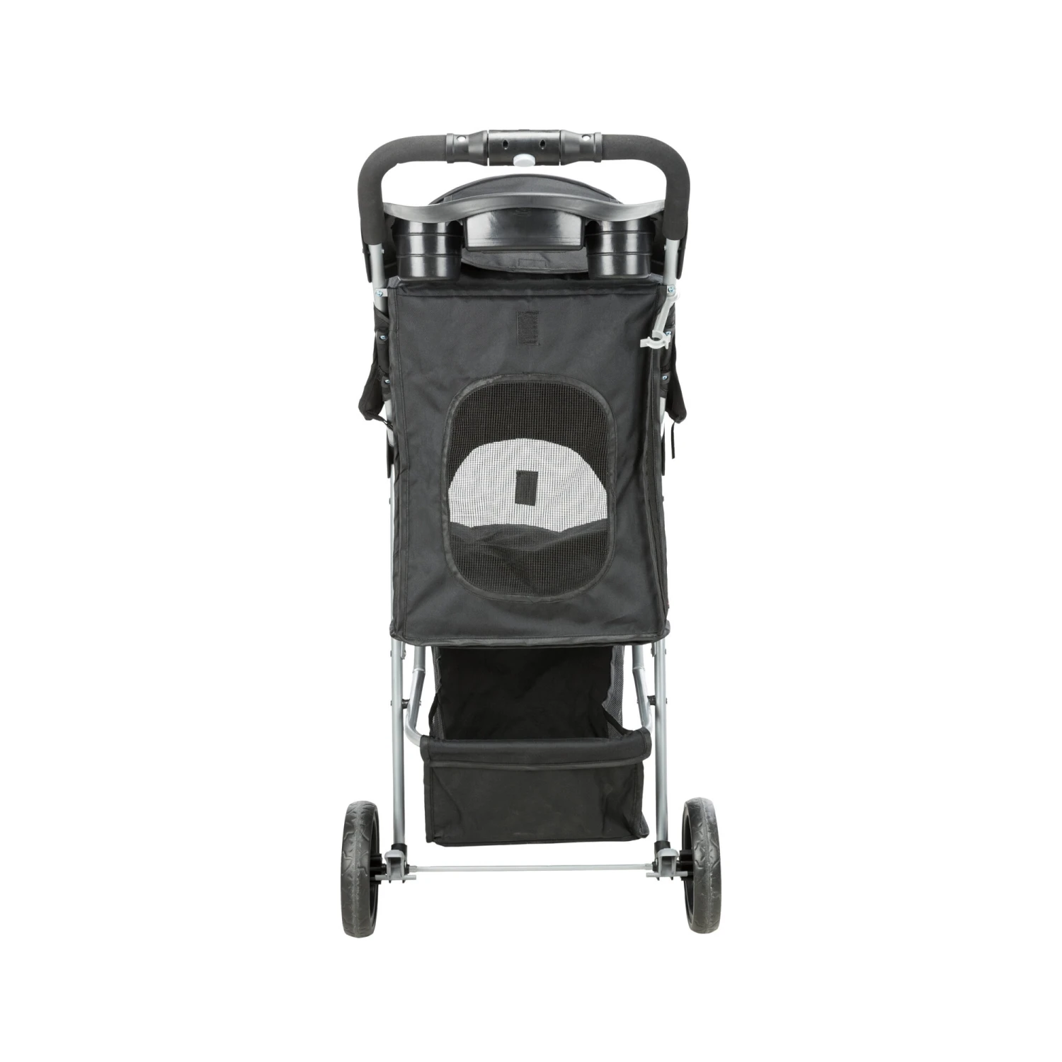 Met deze gemakkelijk opvouwbare Buggy van Trixie neemt u uw hond of kat overal mee naartoe. De buggy is gemakkelijk te besturen en heeft 2 parkeerremmen. Daarnaast is de buggy gedeeltelijk of helemaal af te sluiten, door middel van gemakkelijke ritssluitingen. De Buggy wordt geleverd met een 360-graden draaibaar wielstel, waardoor deze uitermate gemakkelijk te manoeuvreren is. Het handvat is voorzien van een gevoerde handgreep, opbergvakken en een mandje voor een optimaal gebruiksgemak. Tot slot is de Buggy voorzien van een grote achterklep, waardoor in- en uitstappen erg gemakkelijk wordt voor honden en katten!