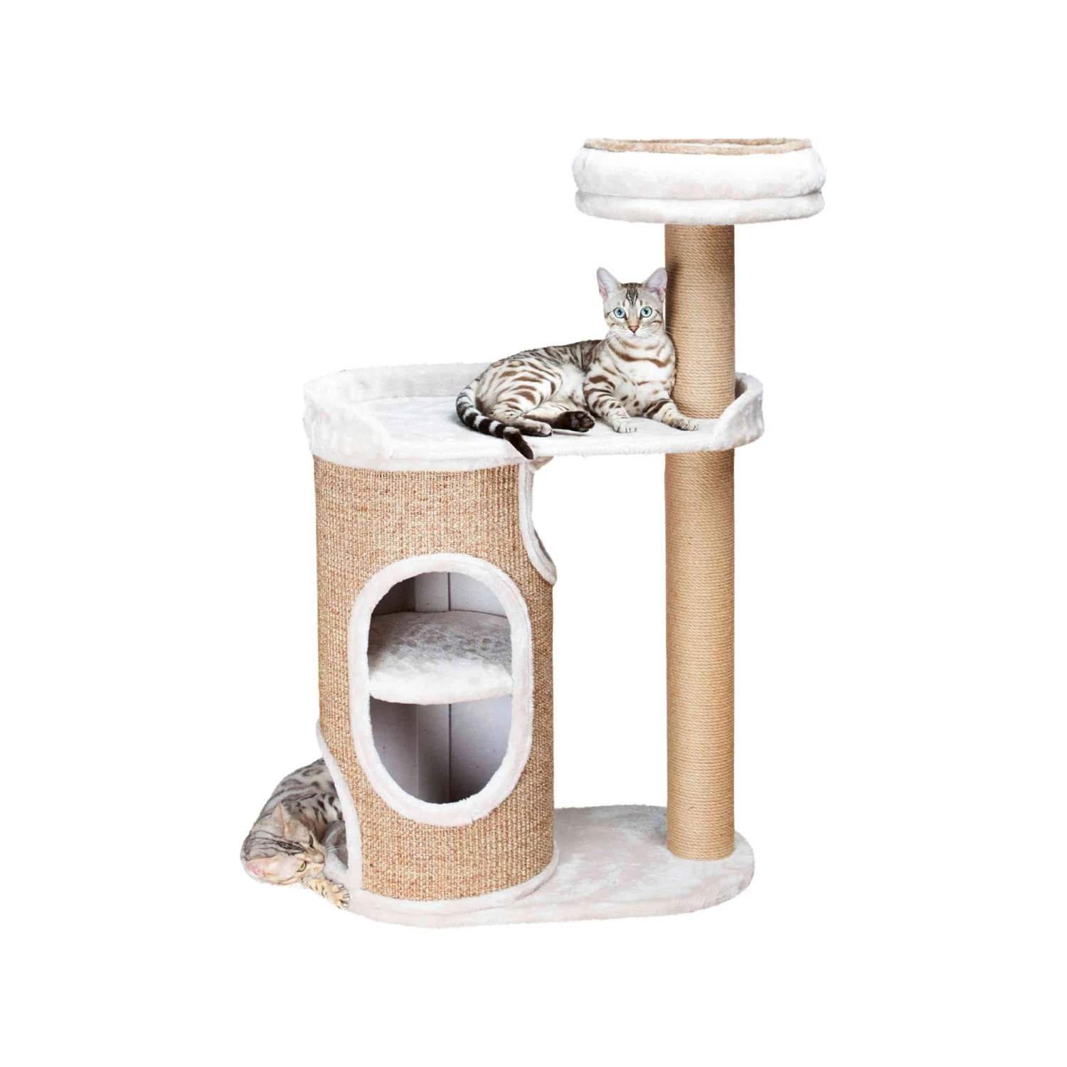 Trixie Krabpaal Falco zorgt dat uw kat overal heerlijk een dutje kan doen. De plateaus zijn bedekt met pluche en op het bovenste plateau is een pluche mand te vinden. Deze mand is uit te wassen met de hand. De stammen zijn van jute en dus perfect voor uw kat om aan te krabben. Met de krabpaal van Trixie kan uw kat zich op elke hoogte vermaken.
