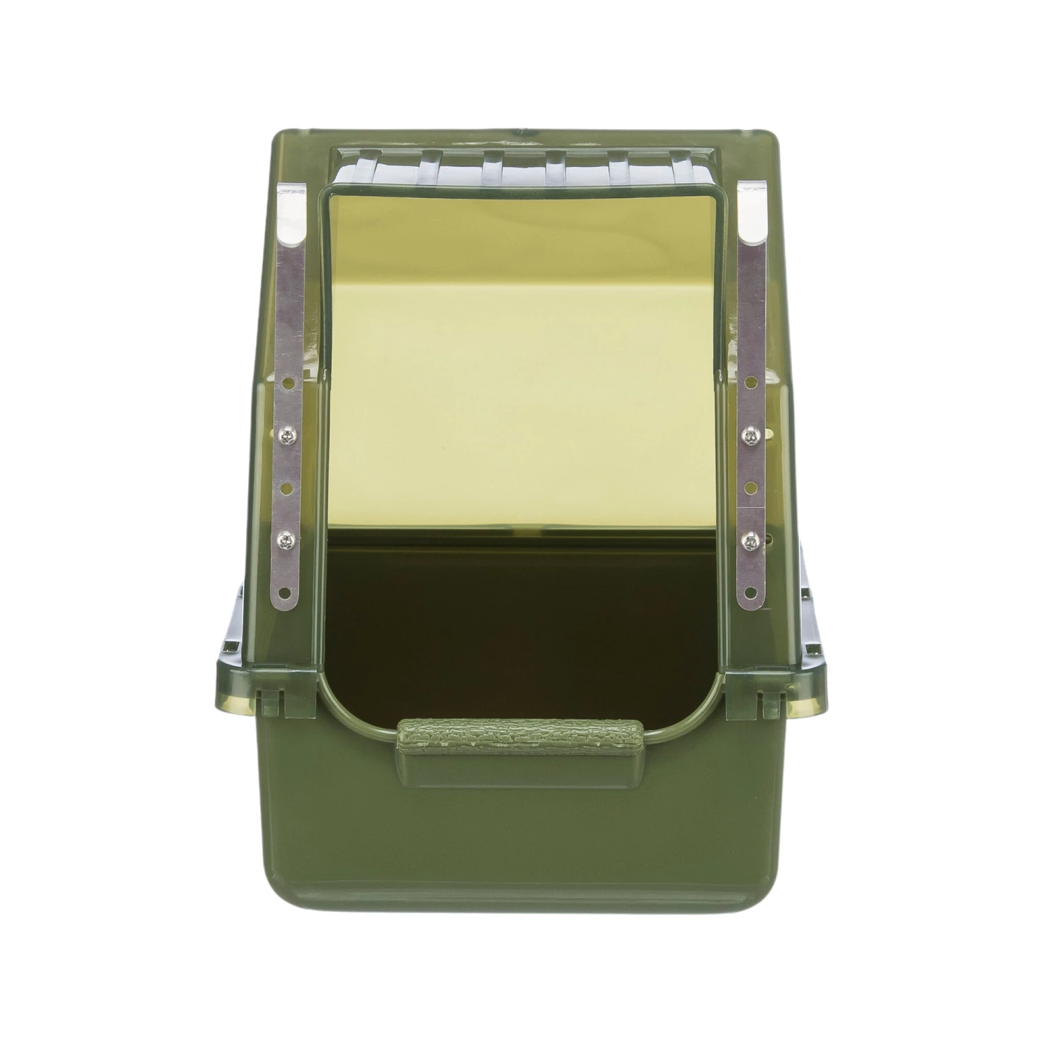 In het vogelbadhuis van Trixie kan uw vogel lekker badderen. Het badhuis heeft een deuropening van: 15 x 11 cm. Het vogelbadhuis is gemaakt van kunststof en heeft een verstelbare haak, waarmee het kan worden opgehangen. Leuk om te weten is dat het vogelbadhuis van Trixie is ontwikkeld in samenwerking met Weltvogelpark (wereldvogelpark) Walsrode.
